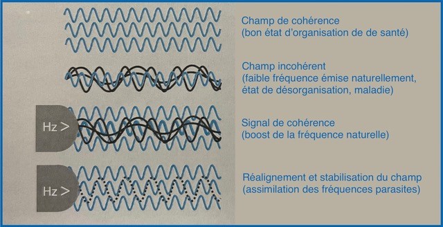 Chaque cellule, molécule, tissu et organe est donc constitué d'énergie qui se manifeste sous forme de matière. Cette énergie peut être détectée par des oscillations électromagnétiques, qui apparaissent dans une ou plusieurs fréquences ou à travers une bande de fréquences et qui sont typiques de l'organe ou du tissu (oscillation naturelle). Chaque fréquence ou bande de fréquence correspond à une ou plusieurs bandes d’absorption dans le spectre électromagnétique.