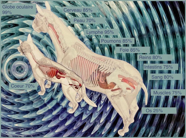 Teneur en eau dans le corps de l'animal (source Vetmedicum®, traduction Equusymbiose)